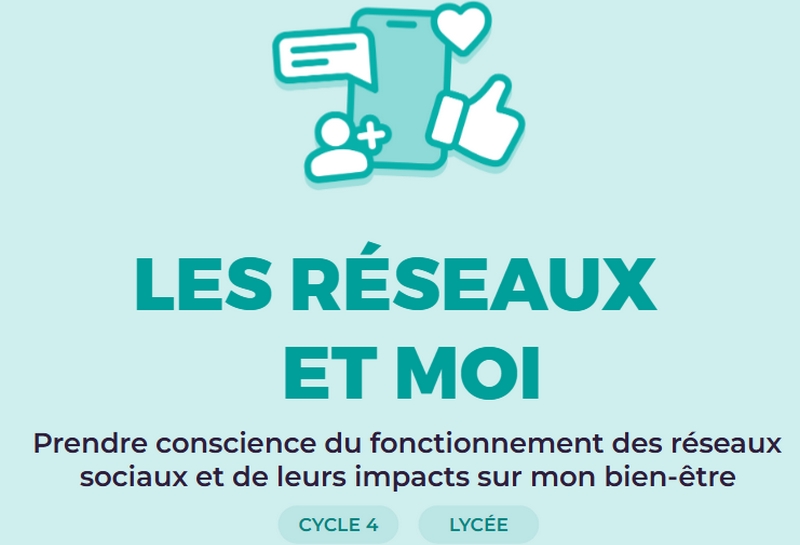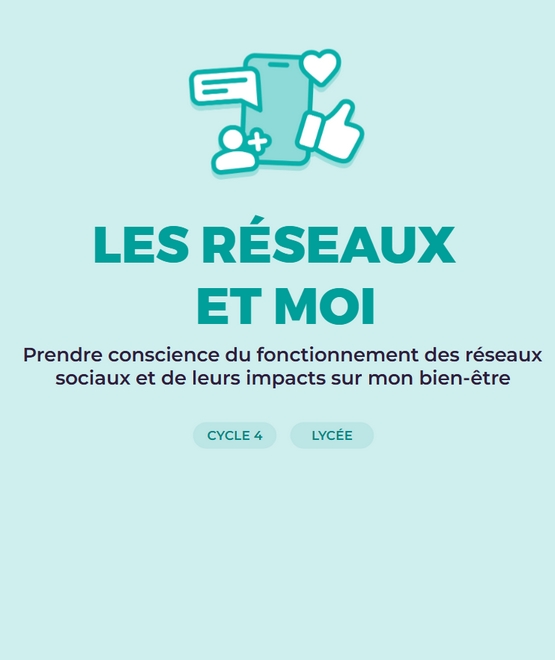 Avec le parcours Les réseaux et moi, les jeunes sont amenés à s’interroger sur le fonctionnement des réseaux sociaux et à leurs impacts sur leur bien-être (numérique). Ils découvrent les mécanismes et stratégies de captation attentionnelle mis en place pour y passer toujours plus de temps, et des leviers d’action pour reprendre leurs usages en main et favoriser leur bien-être en ligne.